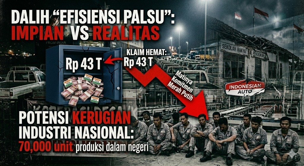 Radar INDOMOSAD mencium adanya aroma ketidakberpihakan pemerintah terhadap pengusaha otomotif lokal. Alasan Direktur Utama Agrinas, Joao De Sousa Mota, yang mengklaim penghematan APBN hingga Rp 43 Triliun dianggap sebagai narasi "pemanis" untuk menjustifikasi banjirnya produk asing di jalanan pelosok nusantara.